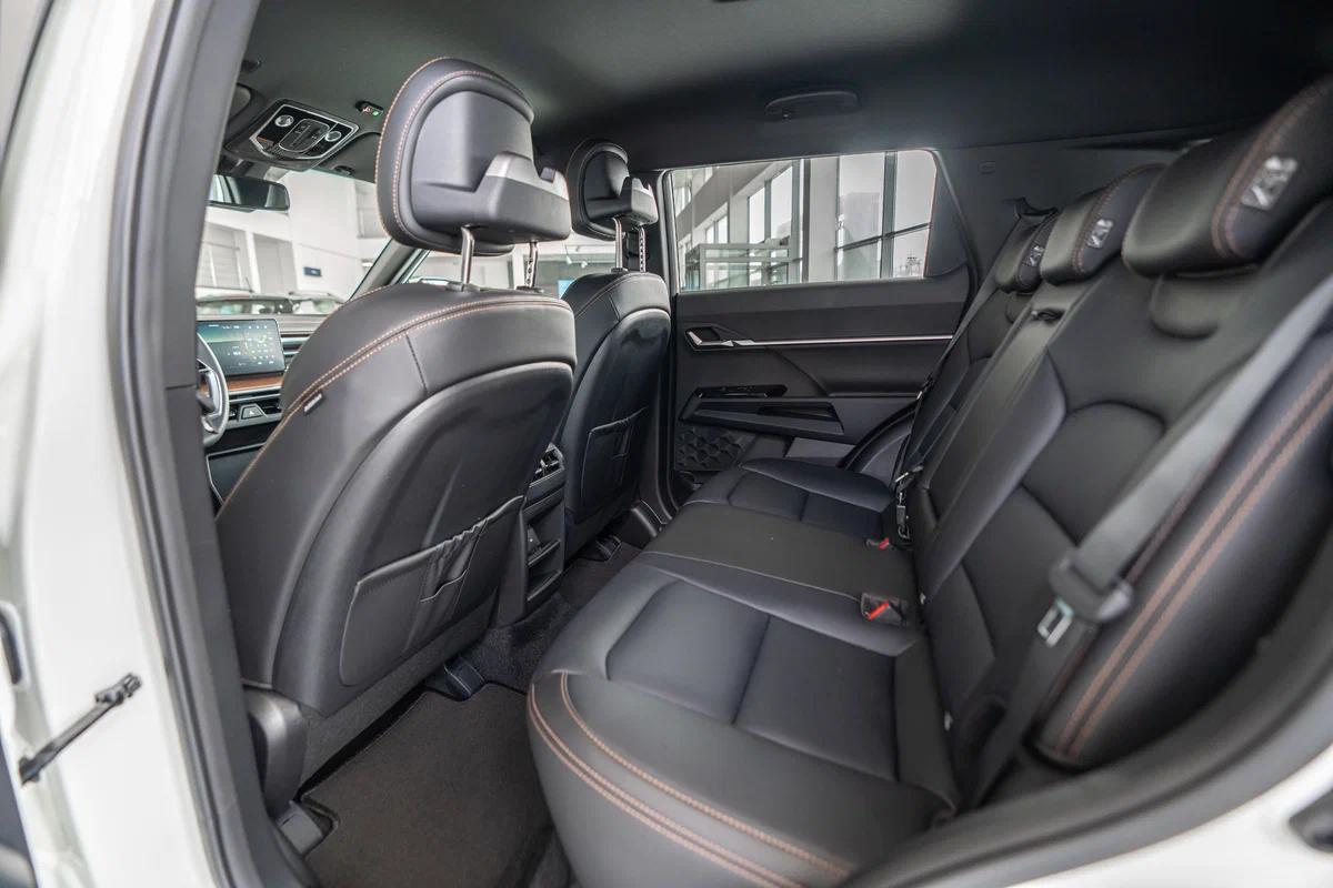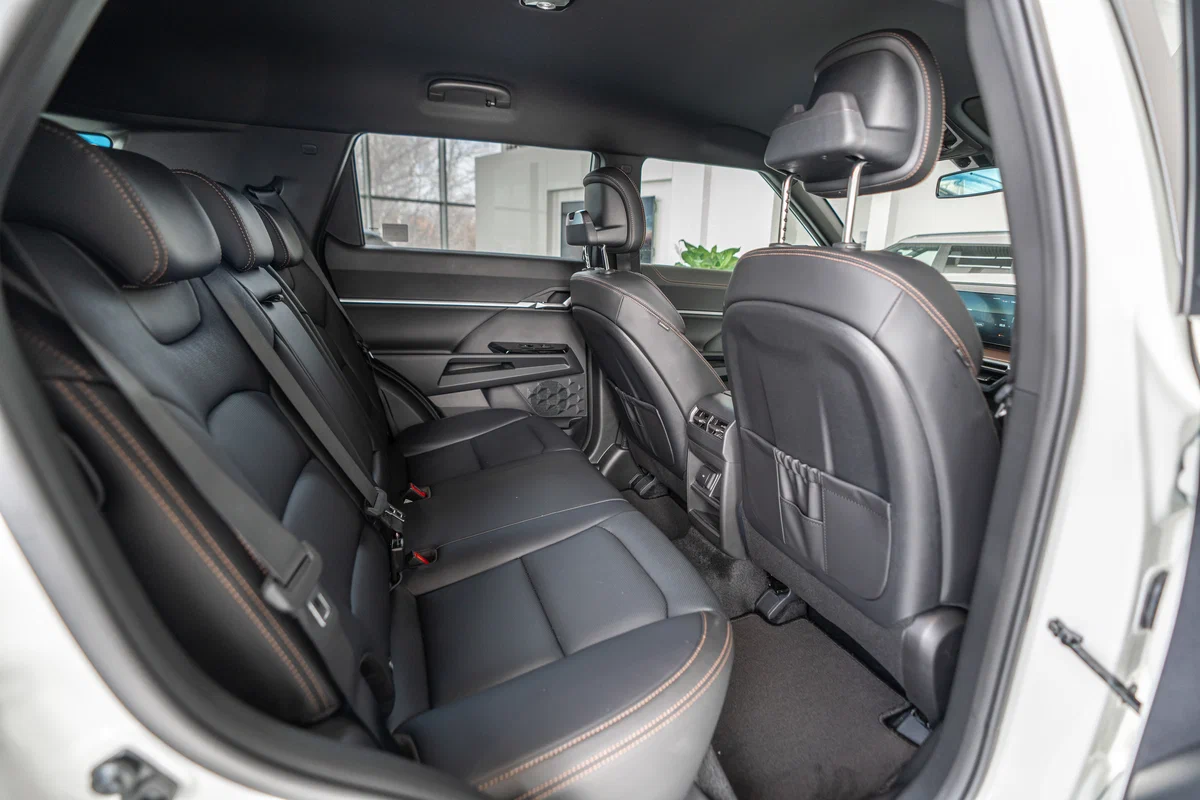 - Комбинированная обивка сидений Brown из эко-кожи и ткани с перфорацией и фактурными вставками