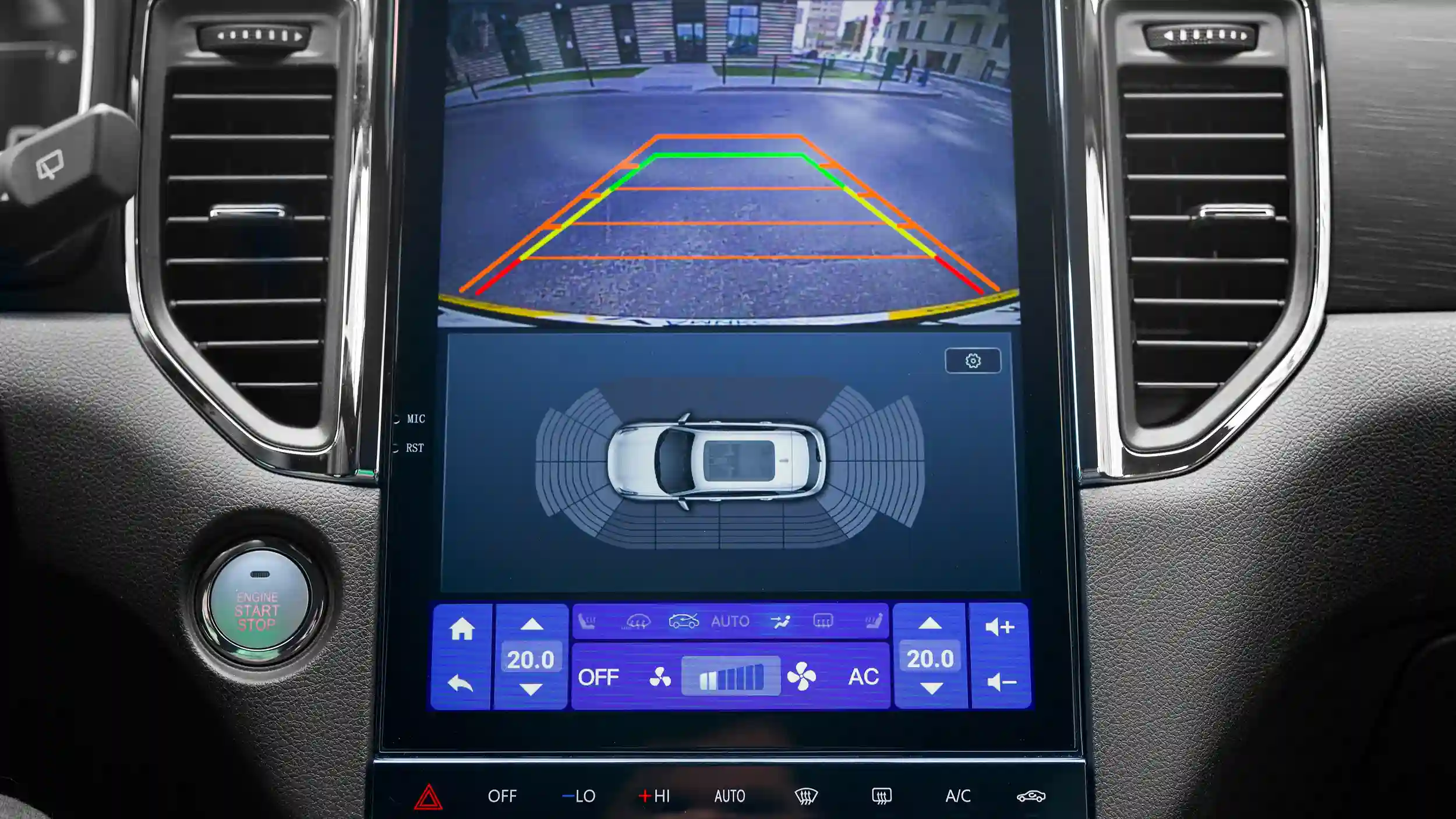 - Камера заднего вида с динамическими линиями разметки